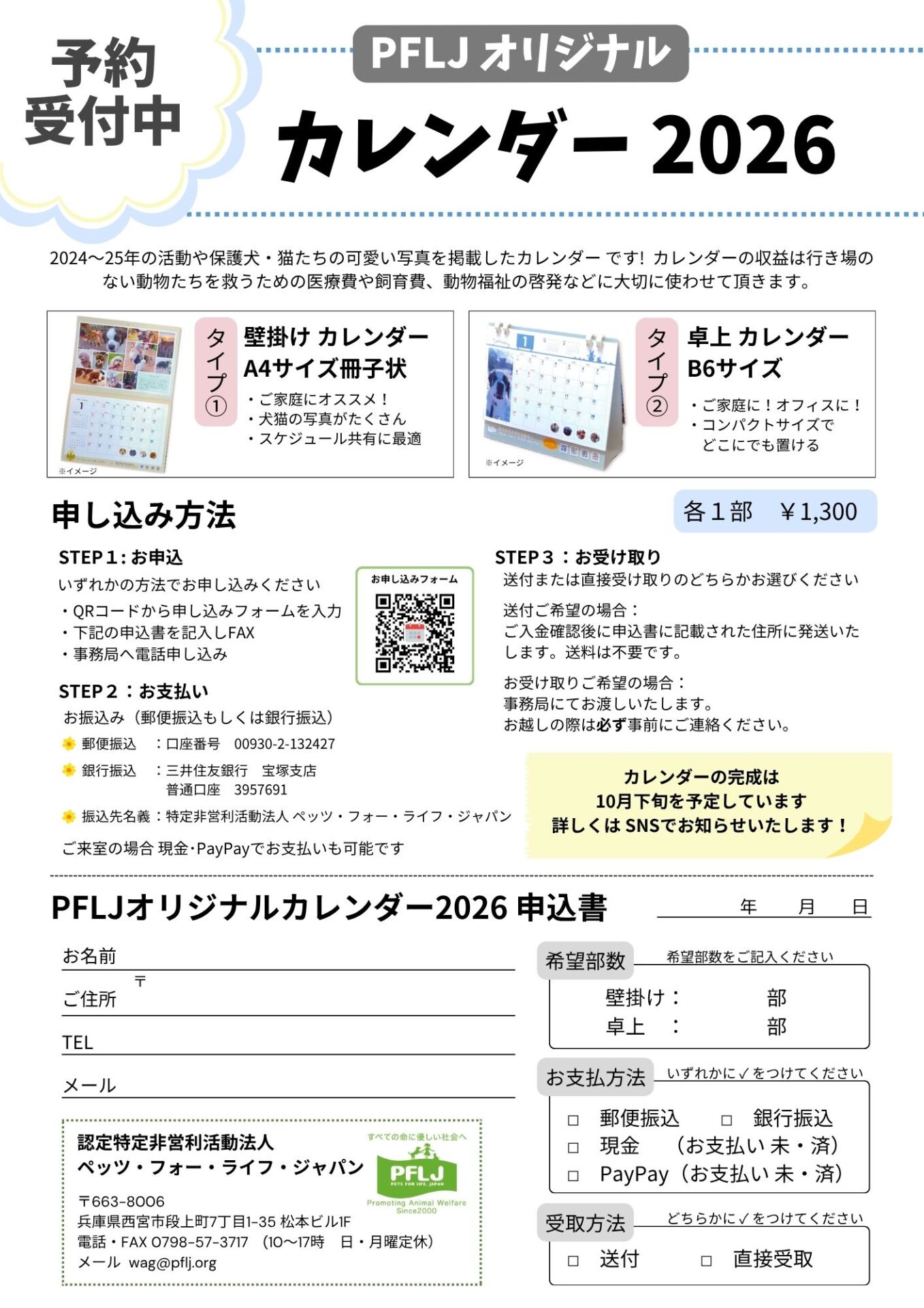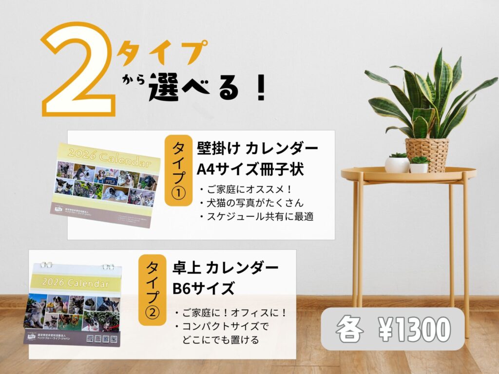 PFLJオリジナル カレンダー2026年が出来上がりました!2024~5年の活動や保護犬・猫たちの可愛い写真をたくさん掲載したカレンダーです。ご自宅用に、職場に、プレゼントに、ぜひお買い求めください🥰カレンダーの収益は行き場のない動物たちを救うための医療費や飼育費、動物福祉の啓発などに大切に使わせて頂きます。