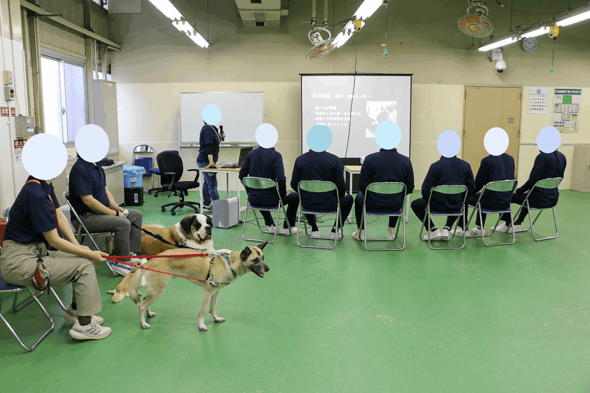 3回目は、犬の生態や習性について学び、ステップアップしたトレーニングを行うプログラムを開催。前回と同様、ヨーゼフくん・ルカくん・きこちゃん・みーくんを連れていきました。保護犬たちも場所に慣れた様子で少年刑務所へと入っていきます。