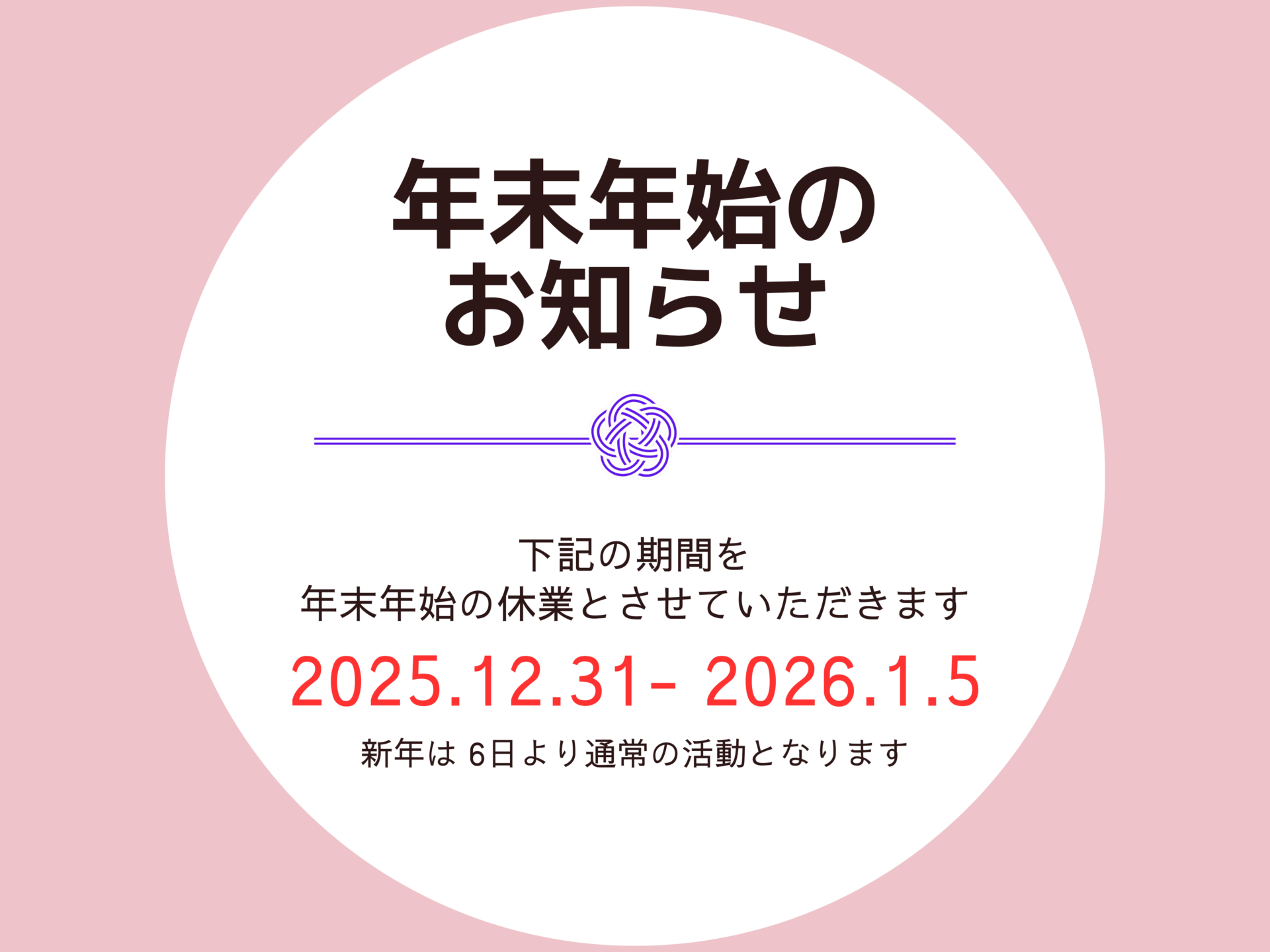 2025年12月01日 【年末年始のお知らせ】 2025年12月31日(水)~2026年1月5日(月)の期間を年末年始の休業とさせていただきます。新年は1月6日より通常の活動となります。 ・愛犬マナー教室西宮教室 :年内最終は12月27日、年始は1月6日からスタートです三木教室 :1月はお休みですたつの教室:1月11日開催です ・パピーパーティー12月はお休みです ・社会化スクール年内最終は12月24日、年始は1月7日からスタートです